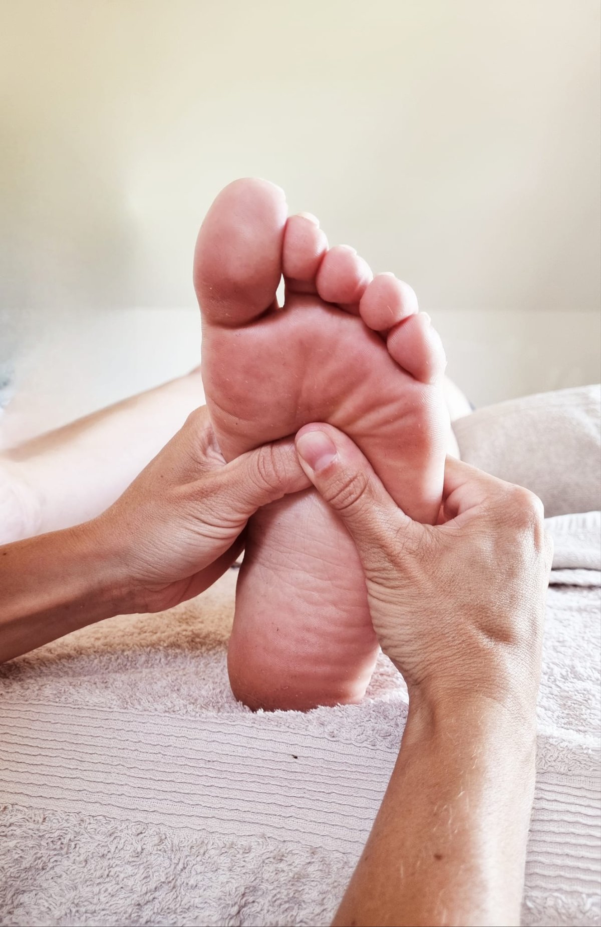 C'est un massage des pieds. Toutes les zones sous les pieds correspondent à des zones dans le corps humain. Grâce à la stimulation des points réflexes sous les pieds, nous favorisons le processus naturel l'autoguérison afin de soulager de nombreux maux (douleurs du dos, fatigue, stress, etc) et systèmes (respiratoire, digestifs, lymphathique, etc).